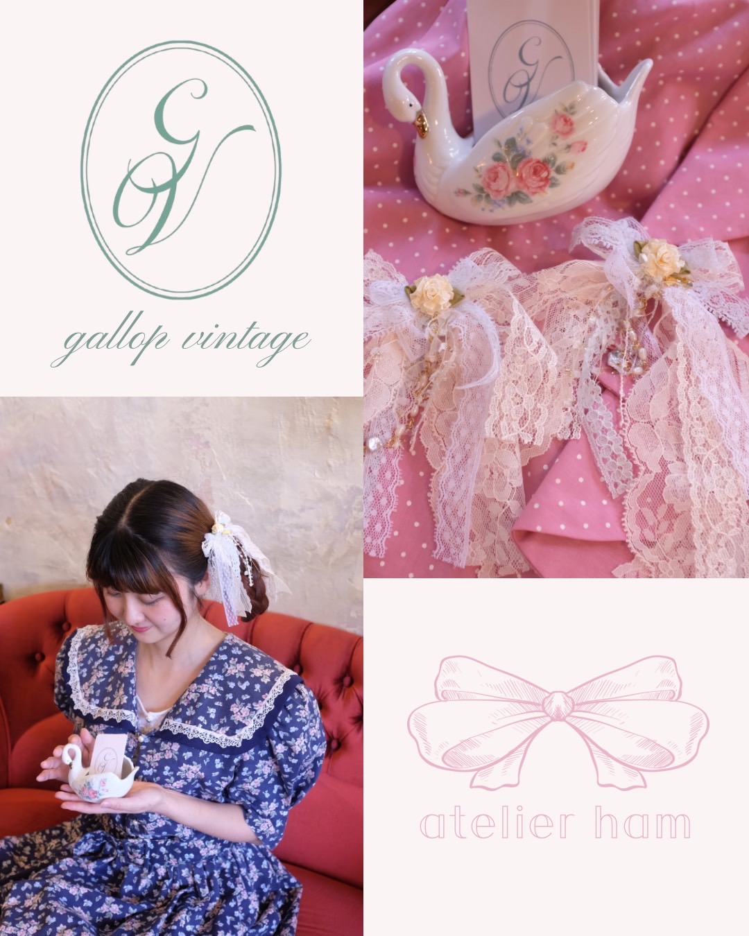 ヴィンテージドレスにそっと寄り添う、ときめきの髪飾り𓂃✧ etoile ribbon collection vol.1🎀Gallop vintage とハンドメイド髪飾り atelier ham のやわらかにきらめくコラボレーション髪飾りが生まれました